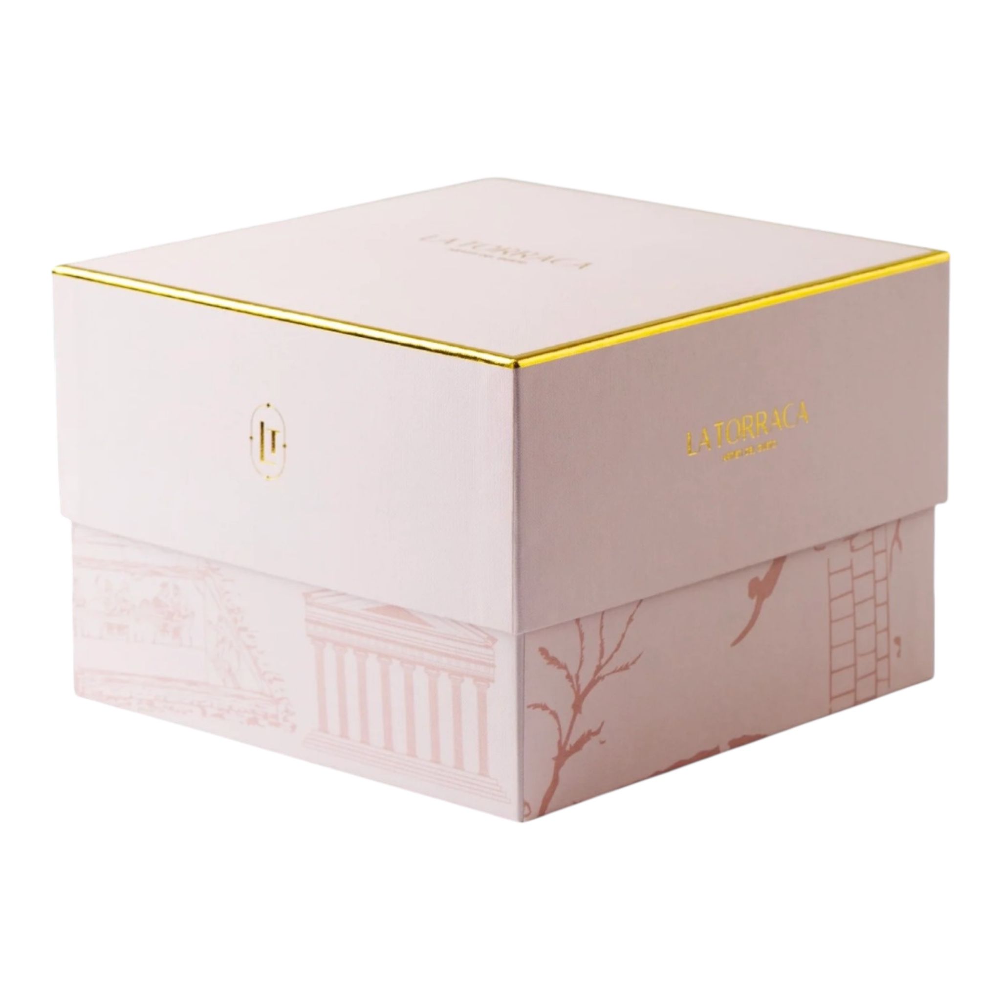 Die Caramello Colomba, ein innovatives Produkt aus Büffelmilch und Büffelbutter, überzeugt den Gaumen mit einem zarten und frischen Geschmack und birgt in ihrer Wabenstruktur erlesene Zutaten wie Karamell-Mou, Bourbon-Vanille aus Madagaskar, italienischen Akazienhonig und Eier von Freilandhühnern. Die Oberfläche ist mit einer Glasur aus weißer Schokolade, gesalzener Karamellpaste und Karamell-Cerealien überzogen, was ihr ein umhüllendes und einzigartiges Aroma verleiht. Gefüllt ist sie mit 200 g köstlicher und erlesener Karamellcreme, die Sie vom ersten Bissen an begeistern wird und von der Sie nicht mehr genug bekommen können. Diese Zutaten werden gekonnt kombiniert und zu einem langsam aufgegangenen Teig verarbeitet, wobei ausschließlich der Sauerteig LA TORRACA 1984 verwendet wird, was der Colomba einen einzigartigen und unverwechselbaren Geschmack verleiht.